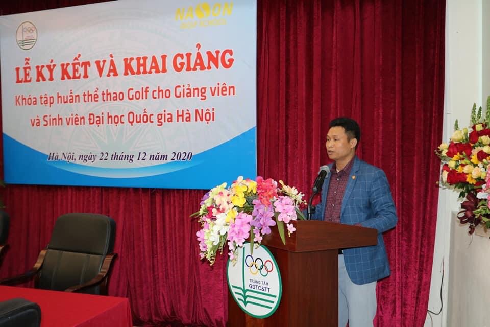 “Dù chương trình đào tạo golf cho sinh viên tại Việt Nam còn rất khó khăn nhưng với sự phối hợp chặt chẽ giữa Trung tâm Giáo dục Thể chất và Thể thao – Đại học Quốc gia Hà Nội và Học viện Nason Golf School, chúng tôi tin rằng sẽ mang đến những chương trình đào tạo bổ ích nhất đến cho các bạn sinh viên”, ông Nguyễn Như Hùng-Phó GĐ Học viện Golf QG-Giám đốc Học viện Nason Golf School phát biểu.