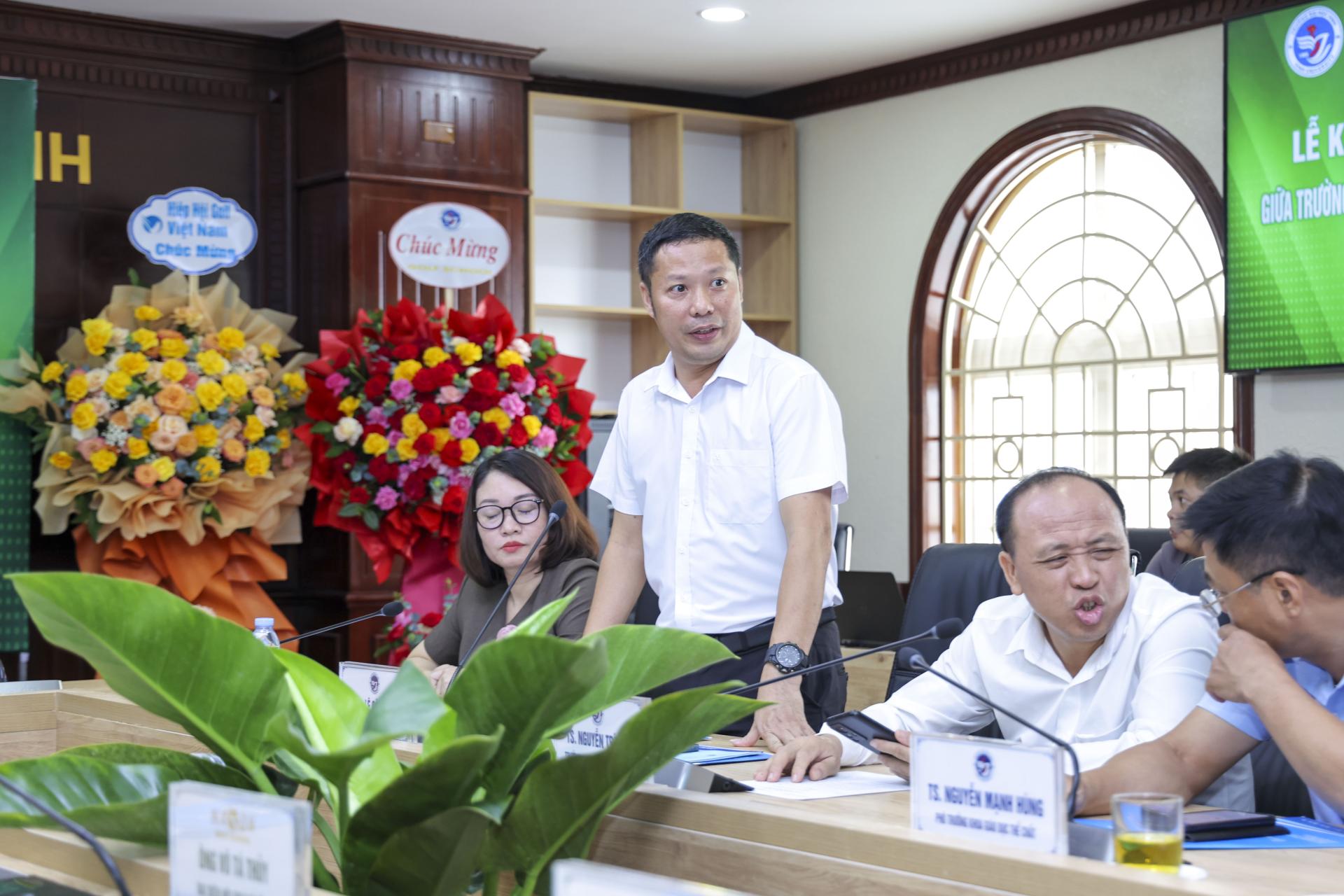 Ông Nguyễn Trí Lục - Phó Trưởng Khoa giáo dục Thể chất phát biểu tại buổi lễ Ký kết hợp tác